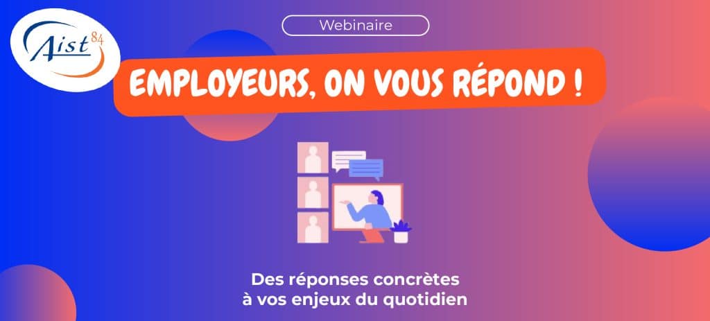 Avec ce webinaire « Employeurs, on vous répond ! », l’AIST 84 vous propose un format simple, direct et interactif, pensé pour répondre à vos questions concrètes de terrain.