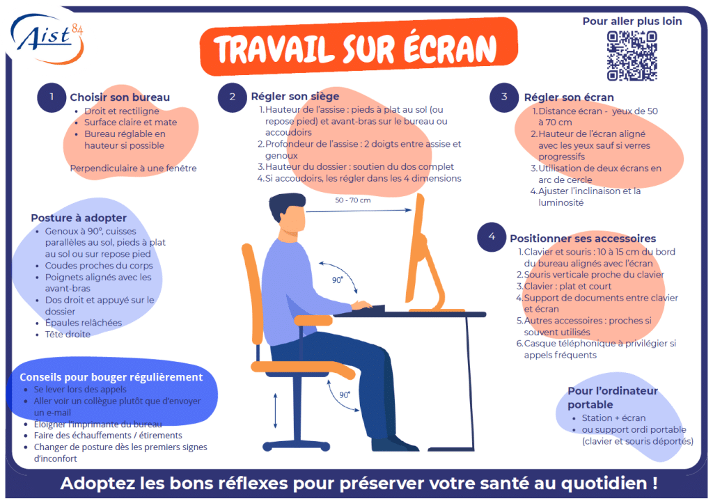 Le travail sur écran concerne aujourd’hui la majorité des salariés, et les troubles qui en découlent (fatigue visuelle, douleurs cervicales, tensions musculaires, TMS…) peuvent être évités grâce à quelques ajustements simples.